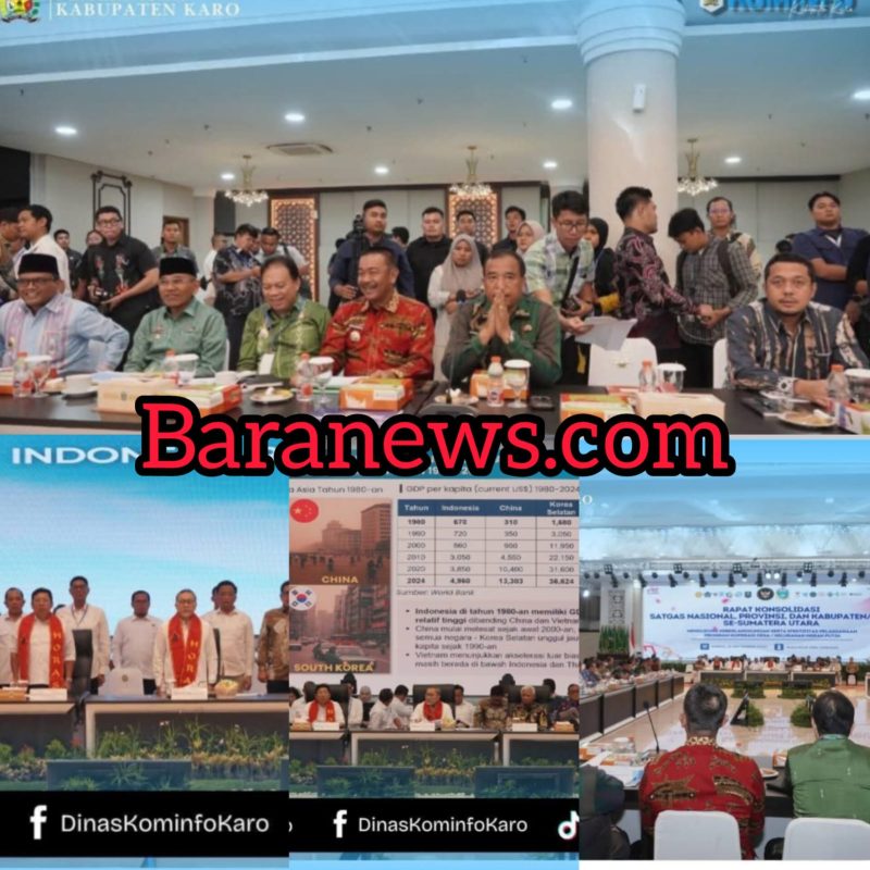Baranews.com | Medan – Bupati Karo, Brigjen Pol (Purn) Dr. dr. Antonius Ginting, Sp.OG., M.Kes., menghadiri Rapat Konsolidasi Satuan Tugas (Satgas) Nasional, Provinsi, dan Kabupaten/Kota Koperasi Desa/Kelurahan Merah Putih (KDMP) di Aula Raja Inal Siregar, Kantor Gubernur Sumatera Utara, Jalan Diponegoro No. 30 Medan, Kamis (18/9/2025) malam.