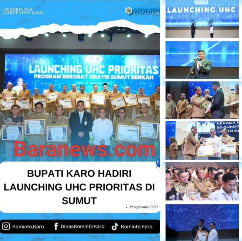 Deli Serdang , Baranews – Bupati Karo, Brigjen Pol (Purn) Dr. dr. Antonius Ginting, Sp.OG., M.Kes., menghadiri kegiatan Launching Universal Health Coverage (UHC) Prioritas yang dipimpin langsung oleh Gubernur Sumatera Utara, Bobby Nasution, di Graha Bhineka Perkasa Jaya, Lubuk Pakam, Senin (29/9/2025). Kegiatan ini menjadi penanda penting komitmen pemerintah daerah dalam menjamin layanan kesehatan yang inklusif dan merata bagi seluruh masyarakat.