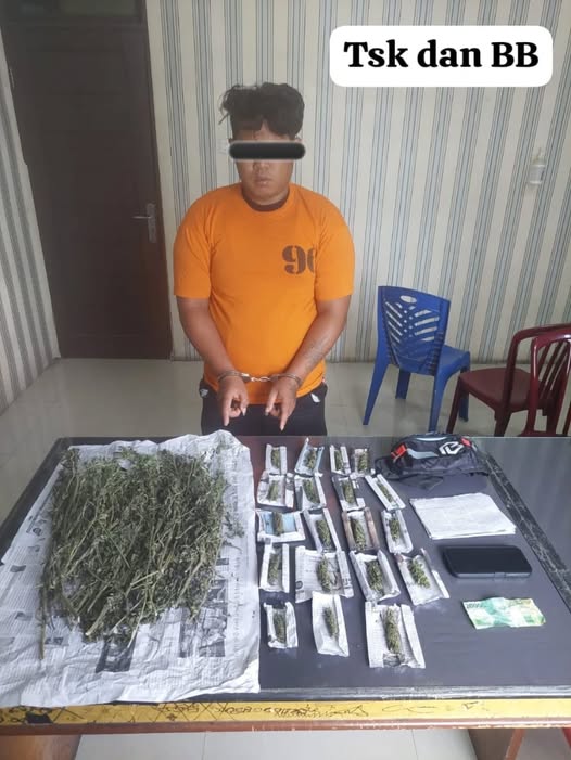 Karo – Satuan Reserse Narkoba Polres Tanah Karo mengamankan seorang pria berinisial RDB (25), warga Desa Nangbelawan yang berprofesi sebagai petani, atas kasus penyalahgunaan narkotika jenis ganja. Penangkapan dilakukan pada Selasa (30/9/2025) sekitar pukul 17.00 WIB di rumah kontrakan tersangka di wilayah Kecamatan Simpang Empat.