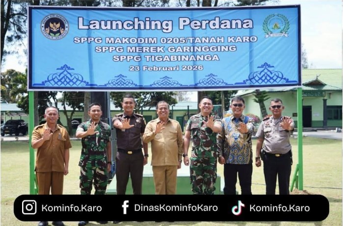 Baranews.com – Dalam langkah nyata mendukung program prioritas nasional, Bupati Karo, Brigjen Pol (Purn) Dr. dr. Antonius Ginting, Sp.OG., M.Kes, bersama Komandan Kodim (Dandim) 0205/TK, Letkol Infanteri Robert B Panjaitan secara resmi melepas launching perdana kegiatan Satuan Pelayanan Pemenuhan Gizi (SPPG) Tahun Anggaran 2026 di wilayah Kodim 0205/Tanah Karo, Senin (23/02/2026).