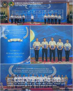 Medan, Lembaga Pemasyarakatan (Lapas) Kelas I Medan kembali menunjukkan komitmennya dalam menghadirkan pelayanan publik yang profesional dan bebas dari maladministrasi dengan menerima Opini Tahun 2025 dari Ombudsman Republik Indonesia. Penyampaian opini tersebut dilaksanakan oleh Ombudsman Republik Indonesia Perwakilan Provinsi Sumatera Utara pada Selasa (24/2/2026) pukul 09.00 WIB hingga selesai.