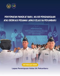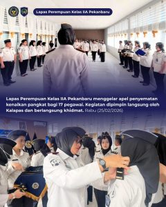 Pekanbaru Lapas Perempuan Kelas IIA Pekanbaru menggelar apel penyematan kenaikan pangkat bagi 17 orang pegawai pada Rabu (25/02/2026). Kegiatan yang berlangsung di halaman kantor tersebut berjalan dengan khidmat dan penuh semangat.
