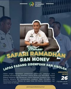 BaraNews.Com –Dalam rangka memastikan pelaksanaan pembinaan, pelayanan, serta stabilitas keamanan dan ketertiban selama Bulan Suci Ramadhan, Kepala Bidang Pelayanan dan Pembinaan Kanwil Ditjenpas Sumatera Utara, Indra Kesuma, bersama tim melaksanakan rangkaian Safari Ramadhan dan Monitoring Evaluasi (Monev) ke Lapas Kelas IIB Padang Sidempuan dan Lapas Kelas IIA Sibolga.