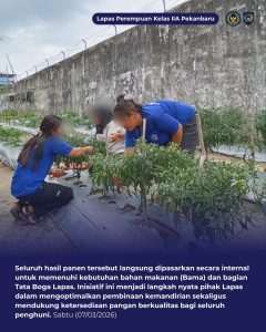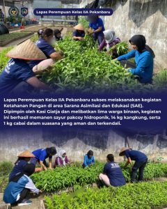 TIMELINES INEWS INVESTIGASI,  Pekanbarun Lembaga Pemasyarakatan (Lapas) Perempuan Kelas IIA Pekanbaru kembali menunjukkan komitmennya dalam mendukung program ketahanan pangan nasional melalui kegiatan panen hasil pertanian di area Sarana Asimilasi dan Edukasi (SAE), Sabtu (07/03/2026).