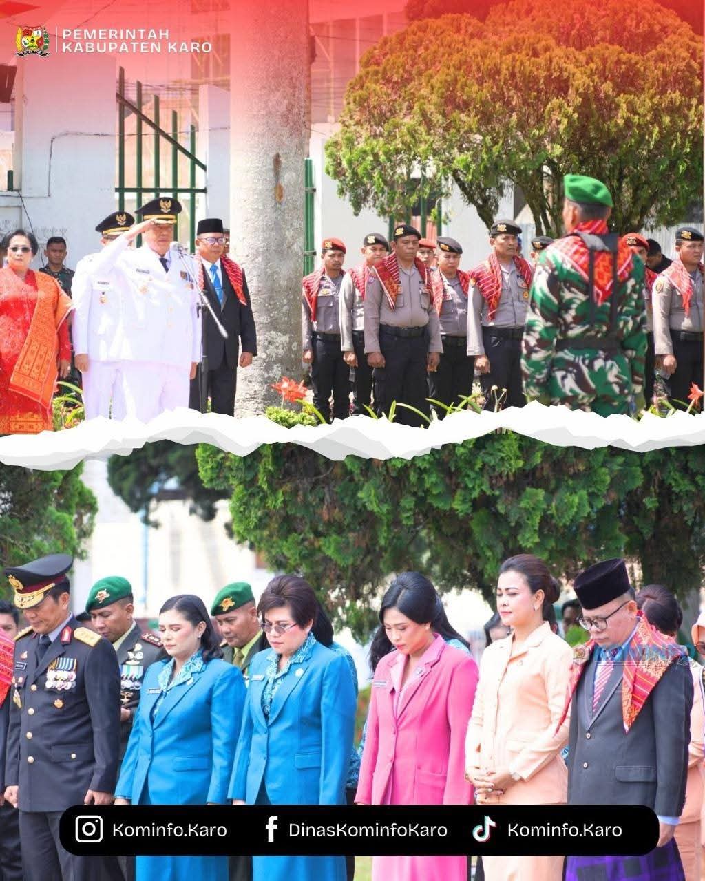 Upacara ini dipimpin langsung oleh Bupati Karo Brigjen Pol (Purn) Dr. dr. Antonius Ginting, Sp.OG., M.Kes dan dihadiri oleh Wakil Bupati Karo, Komando Tarigan,SP dan jajaran Forkopimda, para Anggota DPRD Karo, Sekretaris Daerah Kabupaten Karo, serta para Kepala Perangkat Daerah, Para Camat dan tamu undangan lainnya.