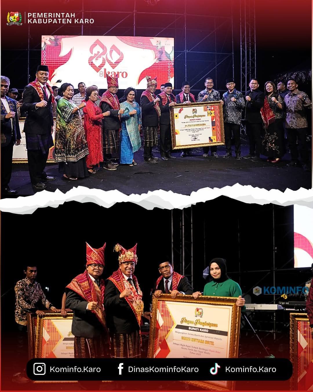 Baranews.com | Bupati Karo, Brigjen Pol. (Purn) Dr. dr. Antonius Ginting, Sp.OG., M.Kes. menyerahkan Piagam penghargaan Kepatuhan Wajib Pajak Tahun Pajak 2025 pada Puncak Hari Jadi Kabupaten Karo yang ke -80 kemarin yang dilaksanakan di Stadion Samura Kabanjahe (8/3/2026), langkah ini bertujuan untuk meningkatkan motivasi, Kepatuhan dan kontribusi wajib pajak terhadap pembangunan daerah.