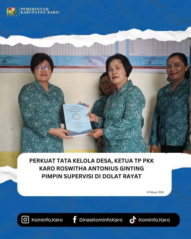 Baranews com | Ketua Tim Penggerak Pemberdayaan Kesejahteraan Keluarga (TP PKK) Kabupaten Karo, Ny. Roswitha Antonius Ginting, melakukan kunjungan kerja dalam rangka pembinaan supervisi desa pelaksanaan 10 Program Pokok PKK Tahun 2026. Kegiatan ini dipusatkan di Desa Dolat Rayat, Kecamatan Dolat Rayat, pada Selasa (10/3/2026).