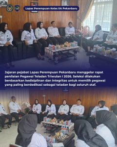 BaraNews.Com –Pekanbaru Lembaga Pemasyarakatan Perempuan (LPP) Kelas IIA Pekanbaru melaksanakan rapat pembahasan penilaian Pegawai Teladan Triwulan I Tahun 2026 pada Rabu (11/03/2026). Kegiatan ini diikuti oleh jajaran pejabat struktural sebagai bentuk komitmen dalam memberikan apresiasi kepada pegawai yang menunjukkan kinerja terbaik dalam pelaksanaan tugas.