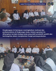 Melalui kegiatan ini, LPP Pekanbaru terus berkomitmen untuk membangun budaya kerja yang berorientasi pada kinerja, disiplin, dan pelayanan yang optimal dalam mendukung pelaksanaan tugas pemasyarakatan, Pungkasnya.