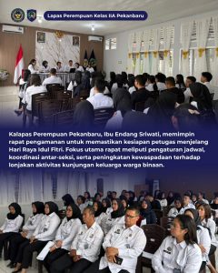 BaraNews.Com –Pekanbaru Dalam rangka memastikan keamanan dan ketertiban menjelang Hari Raya Idul Fitri, Lapas Perempuan Kelas IIA Pekanbaru melaksanakan rapat pengamanan yang dipimpin langsung oleh Kalapas Perempuan Pekanbaru, Ibu Endang Sriwati, pada Kamis (12/03/2026).