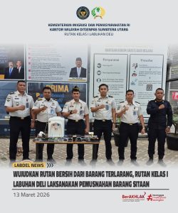 BaraNews.Com –Labuhan Deli,12 Maret 2026 Dalam rangka menjaga keamanan serta menciptakan lingkungan pemasyarakatan yang tertib dan bebas dari barang terlarang, Rumah Tahanan Negara (Rutan) Kelas I Labuhan Deli melaksanakan kegiatan pemusnahan barang sitaan hasil razia pada Kamis (12/3).