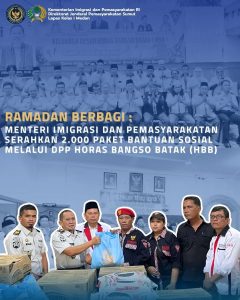 BaraNews.Com –Medan Dalam semangat berbagi di bulan suci Ramadan, perwakilan Kantor Wilayah Direktorat Jenderal Pemasyarakatan Sumatera Utara menghadiri kegiatan penyerahan bantuan sosial sebanyak 2.000 paket kepada masyarakat melalui Kantor DPP Horas Bangso Batak (HBB). Kegiatan tersebut dilaksanakan di Kantor DPP HBB, Jalan Saudara No.