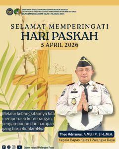 BaraNews.Com-Palangka Raya Kepala Balai Pemasyarakatan (Bapas) Kelas I Palangka Raya, Theo Adrianus, A.Md.IP., S.H., M.H., beserta seluruh jajaran menyampaikan ucapan selamat memperingati Hari Paskah kepada seluruh umat Kristiani.