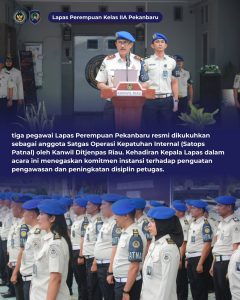 BaraNews.Com-Pekanbaru, 07 April 2026 Lapas Perempuan Pekanbaru turut ambil bagian dalam kegiatan pengukuhan Petugas Satuan Tugas Operasi Kepatuhan Internal (Satops Patnal) yang diselenggarakan oleh Kantor Wilayah Direktorat Jenderal Pemasyarakatan Riau.