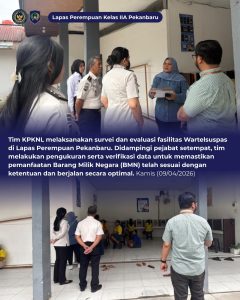 BaraNews.Com-Pekanbaru Tim dari Kantor Pelayanan Kekayaan Negara dan Lelang (KPKNL) melaksanakan kegiatan survei Wartelsuspas di Lapas Perempuan Pekanbaru pada Kamis, 9 April 2026. Kegiatan ini merupakan bagian dari upaya penilaian dan evaluasi terhadap pemanfaatan Barang Milik Negara (BMN) di lingkungan pemasyarakatan.