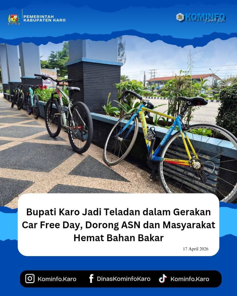 Baranews.com | Pemerintah Kabupaten Karo menggelar Car Free Day sebagai upaya mendorong penghematan bahan bakar sekaligus membangun kesadaran penggunaan energi secara bijak. Bupati Karo, Brigjen Pol (Purn.) Dr. dr. Antonius Ginting, Sp.OG., M.Kes., turut memberi teladan dengan semangat “memimpin dengan memberi contoh”, mengajak ASN dan masyarakat memulai langkah kecil seperti mengurangi penggunaan kendaraan pribadi.