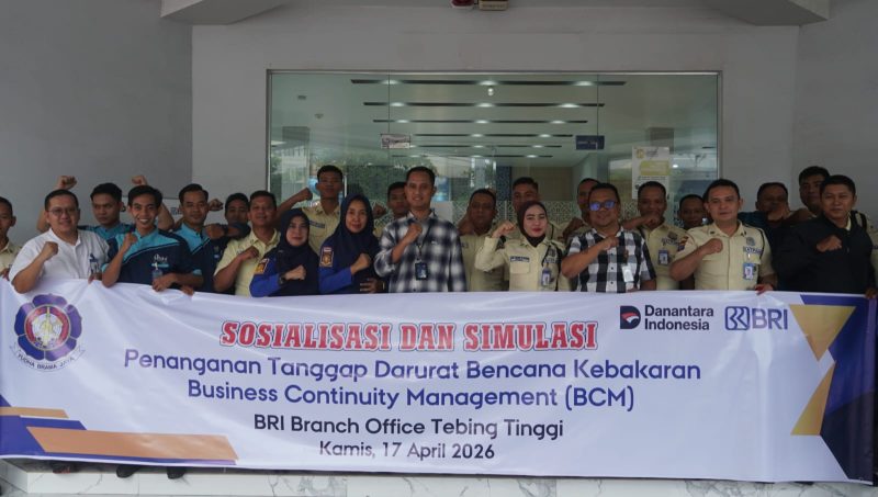 Implementasi Business Continuity Management (BCM) atau Manajemen Kelangsungan Usaha (MKU) terus diperkuat oleh seluruh unit kerja perbankan sebagai langkah strategis dalam menjaga stabilitas operasional di tengah potensi risiko bencana. Sebagai bagian dari komitmen tersebut, BRI Branch Office (BO) Tebing Tinggi melaksanakan kegiatan simulasi penanganan darurat bencana yang berlangsung di halaman depan Gedung Kantor BRI BO Tebing Tinggi, Jumat (17/4/2026)