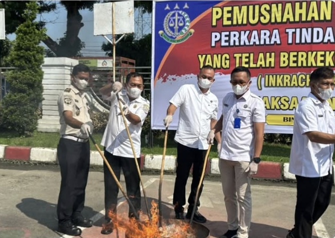 Lembaga Pemasyarakatan (Lapas) Kelas IIA Binjai menunjukkan komitmennya dalam mendukung penegakan hukum dengan menghadiri kegiatan pemusnahan barang bukti perkara tindak pidana umum yang telah berkekuatan hukum tetap (inkracht), yang digelar oleh Kejaksaan Negeri Binjai, Rabu (22/04/2026), di Kantor Kejari Binjai.