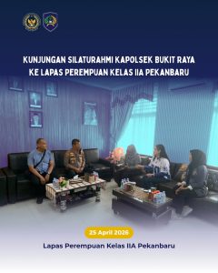Lapas Perempuan Kelas IIA Pekanbaru menerima kunjungan silaturahmi dari Polsek Bukit Raya pada Sabtu (25/4/2026). Kegiatan ini menjadi momentum penting dalam mempererat hubungan kelembagaan sekaligus memperkuat koordinasi antarinstansi penegak hukum di wilayah Kecamatan Bukit Raya.