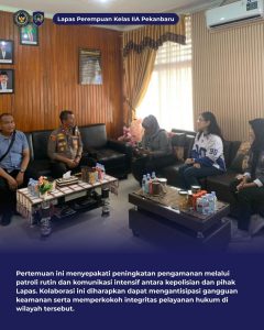 Sementara itu, pihak Lapas Perempuan Pekanbaru menyampaikan apresiasi atas perhatian dan dukungan dari Polsek Bukit Raya. Kolaborasi yang solid dinilai mampu memperkuat stabilitas keamanan sekaligus meningkatkan kualitas pelayanan pemasyarakatan.