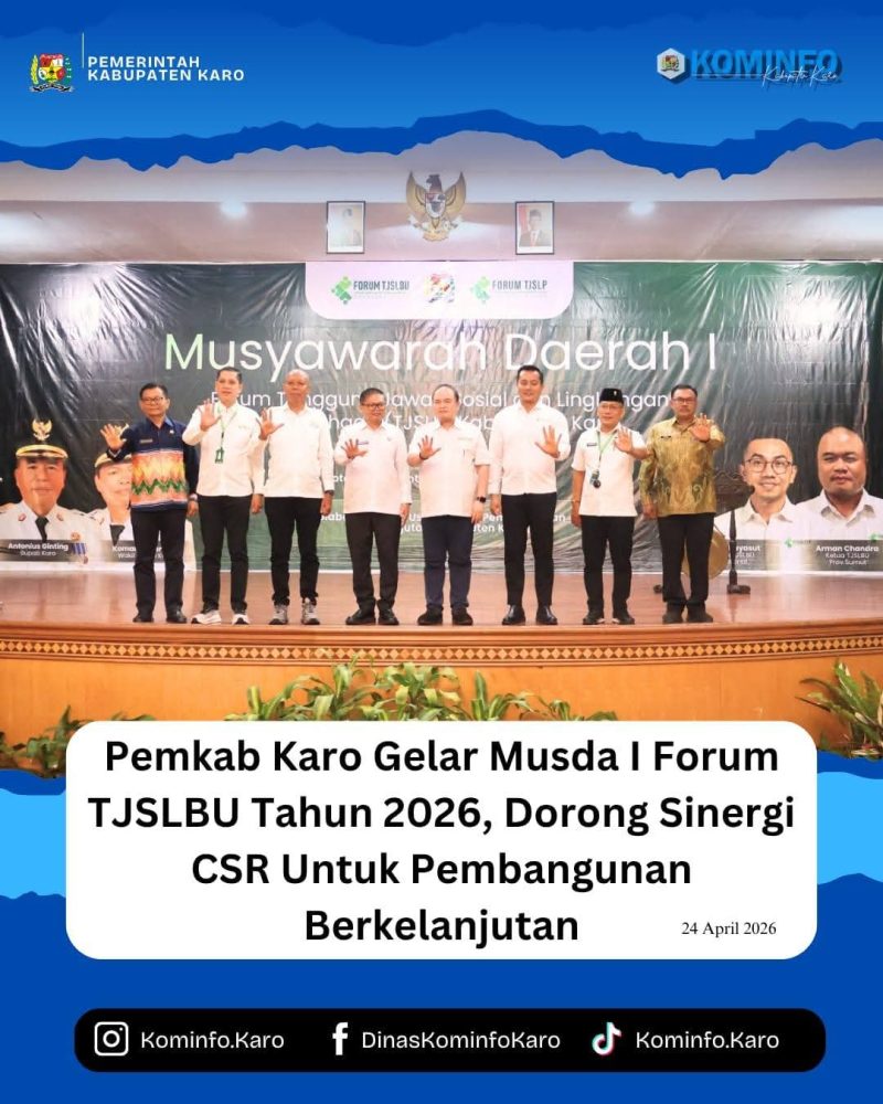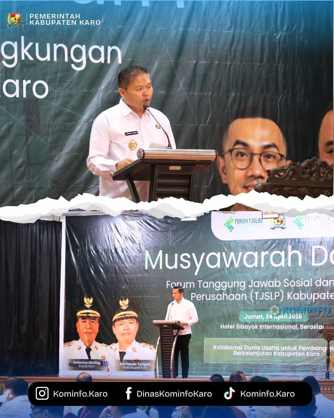 Baranews.com |Berastagi – Pemerintah Kabupaten Karo menggelar Musyawarah Daerah (Musda) I Forum Tanggung Jawab Sosial dan Lingkungan Badan Usaha (TJSLBU) Kabupaten Karo Tahun 2026 bertempat di Hotel Sibayak Internasional, Berastagi Kecamatan Berastagi Kabupaten Karo. Jumat (24/4/2026).