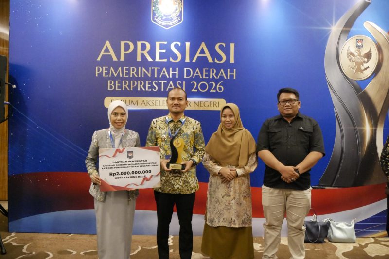 Piala Penghargaan ini diterima oleh Wali Kota Tanjungbalai Mahyaruddin Salim dari Kementerian Dalam Negeri (Kemendagri) yang diserahkan oleh Sekretaris Jenderal (Sekjen) Kementerian Dalam Negeri (Kemendagri), Tomsi Tohir dan turut disaksikan dan memberikan selamat secara langsung Menteri Dalam Negeri (Mendagri) Muhammad Tito Karnavian saat menghadiri malam anugerah acara Apresiasi Pemerintah Daerah Berprestasi 2026 yang digelar di OPI Hotel Palembang, Sumatera Selatan, Sabtu (25/4/2026) malam