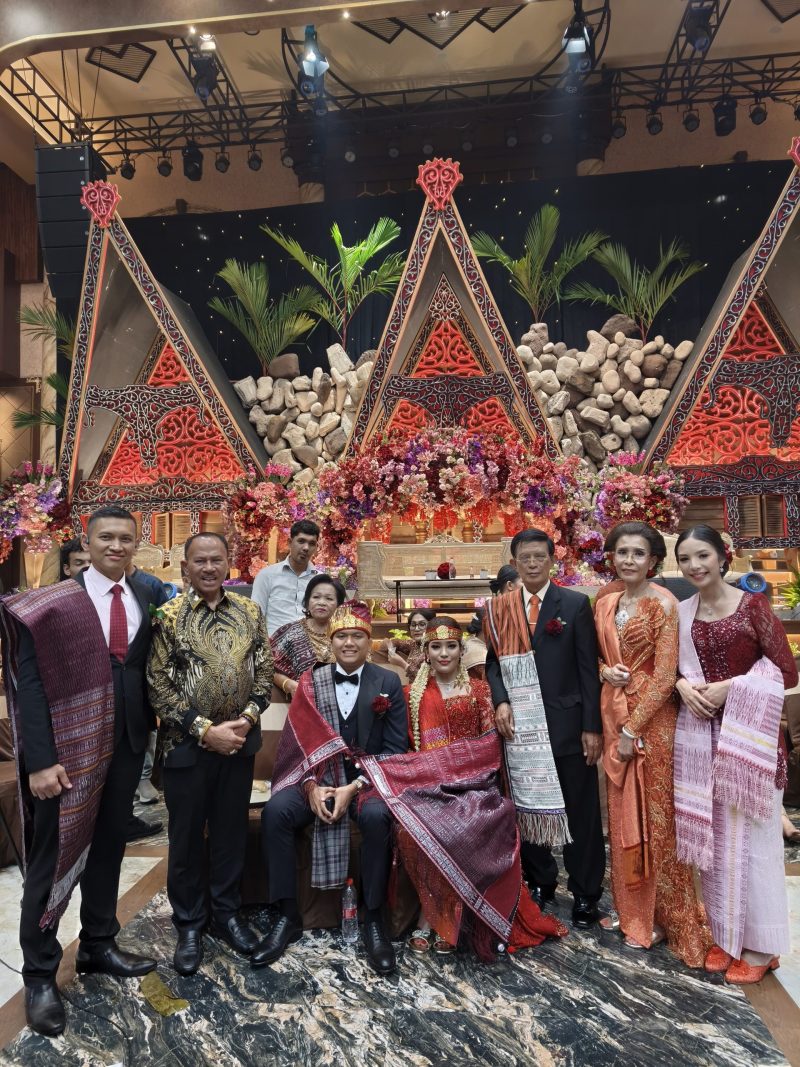 Selanjutnya, Dr. Maruli Siahaan juga menghadiri resepsi pernikahan dan adat pasangan Dindra Yuliana Siahaan, S.P., dengan Jogi Fernando Sinaga, S.E. Acara tersebut dilaksanakan di Wisma Tosin (Toga Sinaga), Medan Tuntungan. Prosesi adat yang kental dengan budaya Batak menambah kekhidmatan serta kehangatan suasana acara.