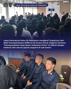 BaraNews.Com-Pekanbaru, 27 April 2026 Lembaga Pemasyarakatan (Lapas) Perempuan Kelas IIA Pekanbaru mengikuti kegiatan Tasyakuran Hari Bakti Pemasyarakatan (HBP) ke-62 yang diselenggarakan oleh Kementerian Imigrasi dan Pemasyarakatan Republik Indonesia secara virtual melalui Zoom Meeting, Senin (27/04/2026).