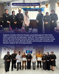 Tak hanya itu, kegiatan turut dirangkaikan dengan penyerahan bantuan sosial kepada masyarakat serta bantuan gerobak usaha bagi keluarga warga binaan sebagai bentuk kepedulian sosial.