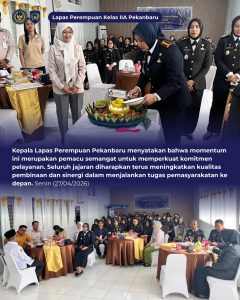 Kepala Lapas Perempuan Kelas IIA Pekanbaru menyampaikan bahwa keikutsertaan dalam kegiatan ini menjadi momentum penting untuk memperkuat komitmen seluruh jajaran dalam memberikan pelayanan terbaik, sekaligus meningkatkan kualitas pembinaan bagi warga binaan, Terangnya.