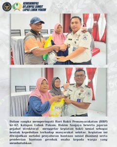 Dalam rangka memperingati Hari Bakti Pemasyarakatan (HBP) ke-62, Kalapas Lubuk Pakam, Hakim Sanjaya beserta jajaran pejabat struktural  menggelar kegiatan bakti sosial sebagai bentuk kepedulian terhadap masyarakat sekitar. Kegiatan ini diwujudkan melalui penyaluran bantuan sosial (bansos) serta pemberian bantuan gerobak usaha kepada warga yang membutuhkan.