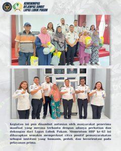 Kegiatan ini pun disambut antusias oleh masyarakat penerima manfaat yang merasa terbantu dengan adanya perhatian dan dukungan dari Lapas Lubuk Pakam. Momentum HBP ke-62 ini diharapkan semakin memperkuat citra positif pemasyarakatan sebagai institusi yang humanis, peduli, dan berorientasi pada pelayanan prima, Tutupnya.
